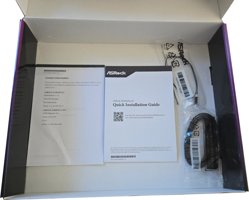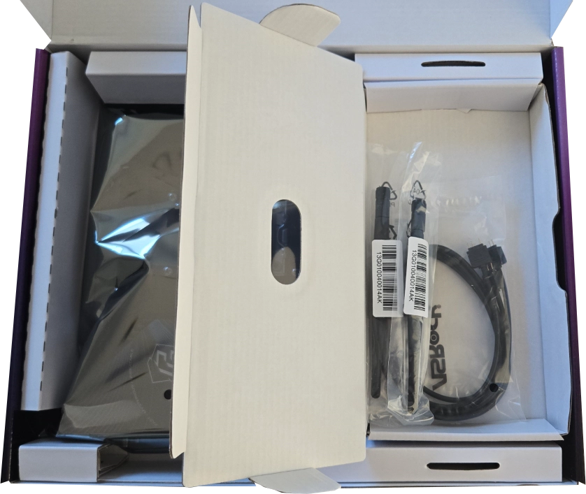 Bevor das ASRock B850 Riptide WiFi Mainboard seinen Platz im Gehäuse einnimmt, werfen wir einen genaueren Blick auf das Unboxing. Schon beim Auspacken zeigt sich, dass ASRock hier ein hochwertiges Produkt liefert – sauber verarbeitet, gut verpackt und mit einer klaren Struktur im Lieferumfang. Genau so, wie ich es auch erwartet habe.