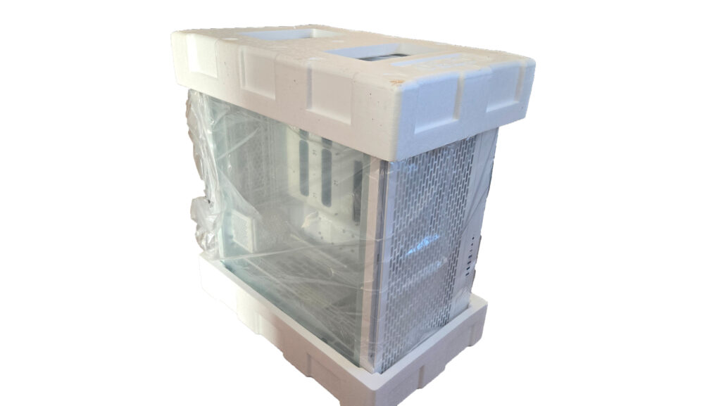 Bevor später der Einbau der Hardware startet, durfte das Thermaltake CTE C750 ARGB Snow natürlich erst einmal aus seiner Verpackung befreit werden. Schon beim Auspacken wird klar, dass es sich nicht um ein gewöhnliches Gehäuse handelt – die schiere Größe, das saubere Design, das Glas und die solide Verarbeitung hinterlassen sofort Eindruck.