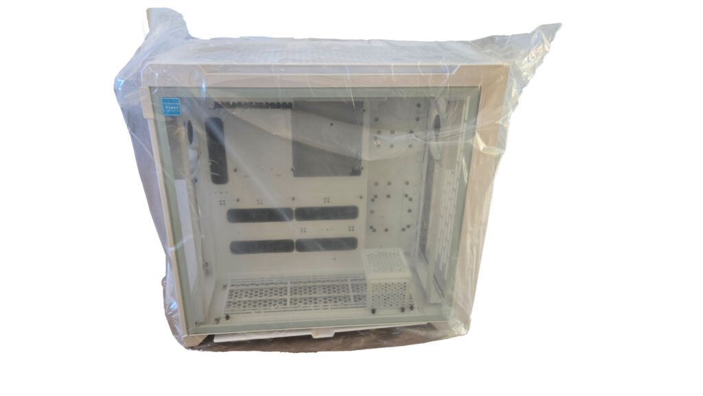 Alle Komponenten sind sicher verpackt, und selbst die Glasflächen sind gut geschützt. Besonders auffällig ist, wie hochwertig die Materialien wirken – vom massiven Rahmen bis zu den sauber eingefassten Lüftergittern. Hier bekommt man schon beim Unboxing das Gefühl, ein echtes Premium-Server-Gehäuse in den Händen zu halten.